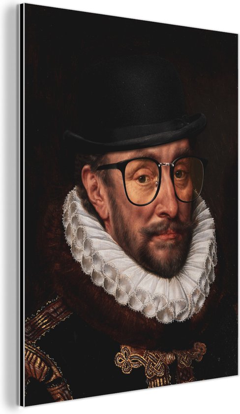 Décoration murale Métal - Peinture Aluminium Industriel - Willem van Oranje - Adriaen Thomasz - Chapeau - 120x160 cm - Dibond - Photo sur aluminium - Décoration murale industrielle - Pour le salon/chambre