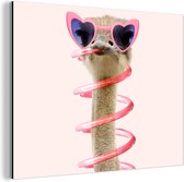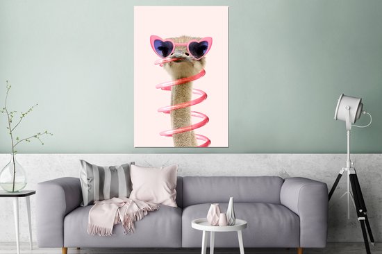 Décoration murale Métal - Peinture Aluminium Industrielle - Autruche - Lunettes de soleil - Rose - Animaux - 120x180 cm - Dibond - Photo sur aluminium - Décoration murale industrielle - Pour le salon / chambre