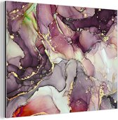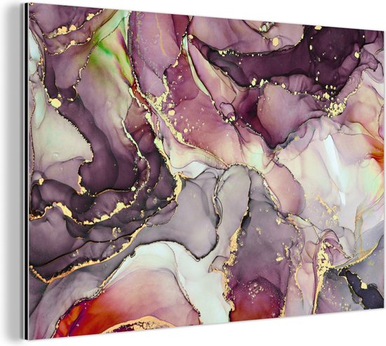 Décoration murale Métal - Peinture Aluminium Industrielle - Marbre - Rouge - Violet - Or - 90x60 cm - Dibond - Photo sur aluminium - Décoration murale industrielle - Pour le salon/chambre