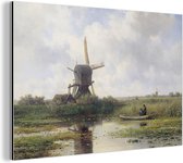 Décoration murale Métal - Peinture Aluminium Industrielle - Moulin à vent - Willem Roelofs - Maîtres anciens - Art - 150x100 cm - Dibond - Photo sur aluminium - Décoration murale industrielle - Pour le salon / chambre