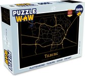 Plan de la ville de Tilbourg. Le plan d'étage est noir avec des accents dorés et des rues blanches.