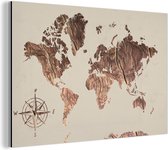 Décoration murale Métal - Peinture Aluminium Industrielle - Wereldkaart - Etagère Bois - Rose des Vents - 30x20 cm - Dibond - Photo sur aluminium - Décoration murale industrielle - Pour le salon / chambre