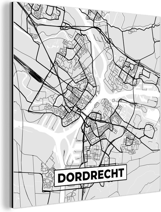 Décoration murale Métal - Peinture Aluminium - Plan de Ville - Dordrecht - Grijs - Wit - 50x50 cm