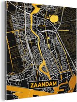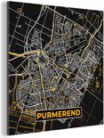 Décoration murale Métal - Peinture Aluminium - Plan de Ville - Purmerend - Or - Zwart - 90x90 cm - Carte