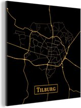 Décoration murale Métal - Peinture Aluminium - Plan de Ville - Tilburg - Or - Zwart - 90x90 cm - Dibond - Carte