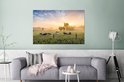 Décoration murale Métal - Peinture Aluminium - Vache - Soleil - Herbe - 180x120 cm