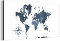 Décoration murale Métal - Peinture Aluminium - Wereldkaart - Aquarelle - Rose des vents - 120x60 cm - Dibond