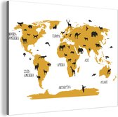 Décoration murale Métal - Peinture Aluminium - Wereldkaart Enfants - Animaux - Marron - 150x100 cm
