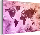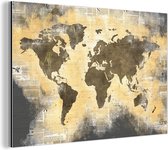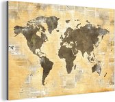 Décoration murale Métal - Peinture Aluminium - Wereldkaart - Rétro - Journal - 60x40 cm - Dibond
