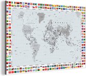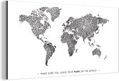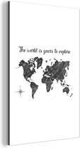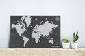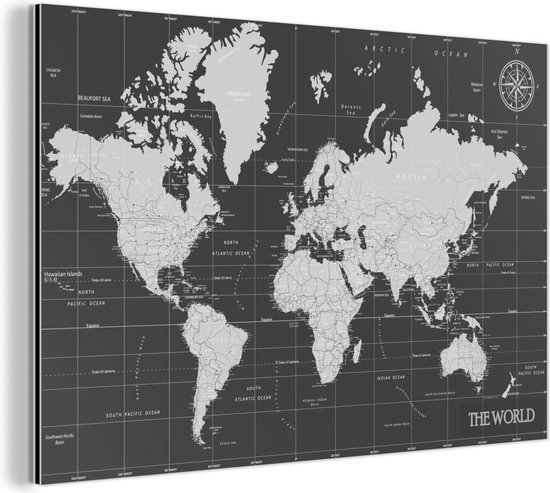 Décoration murale Métal - Peinture Aluminium - Wereldkaart - Zwart - Wit - Monde - 30x20 cm