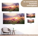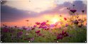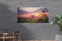 Fleurs roses dans un champ au coucher du soleil.À propos de GreatGardenPosters