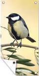 Décoration murale murale d'extérieur Vogel sur une branche avec une baie - 80x160 cm - Toile de jardin