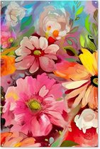 Une peinture à l'huile avec des fleurs colorées..
