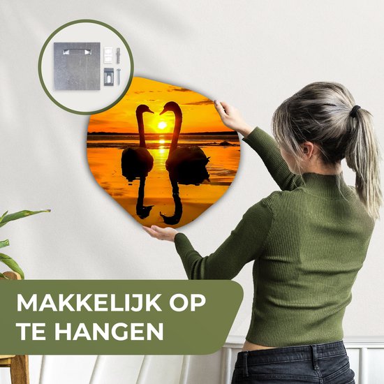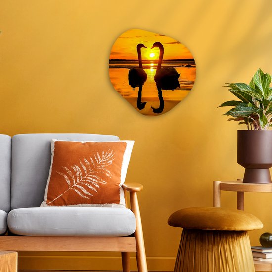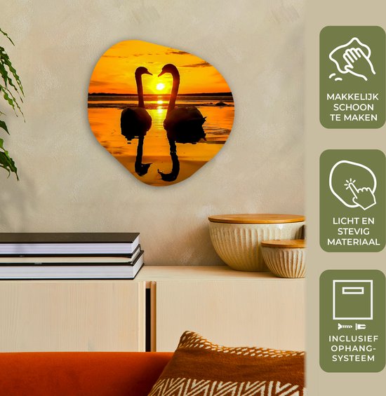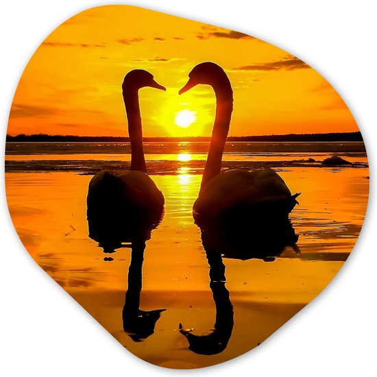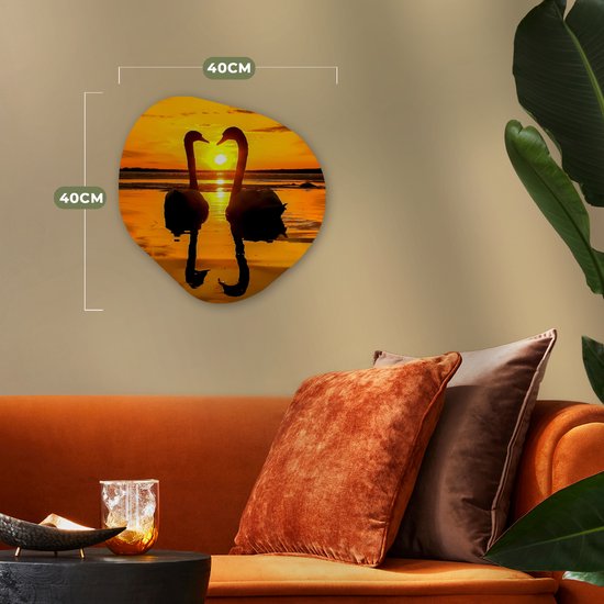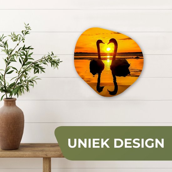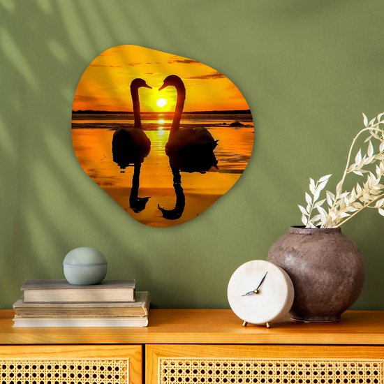 Décoration murale Organique - Décoration murale Plastique - Peinture Organique - Cygnes - Coucher de Soleil - Oiseau - Oranje - Water- 40x40 cm - Forme Miroir Asymétrique sur Plastique