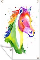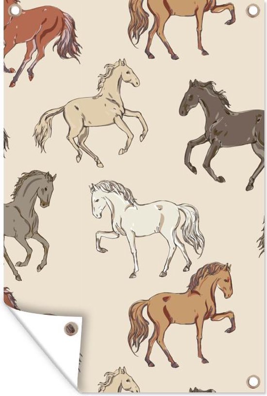 Tableau de jardin - Paarden - Wit - Grijs - Filles - Enfants - Meiden - Posters de jardin extérieur