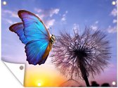 Décoration murale Papillon - Coucher de soleil - Pissenlit - Blauw - 180x120 cm - Poster jardin