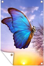 Tableau jardin - Papillon - Coucher de soleil - Pissenlit - Blauw - Posters de jardin