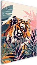 Décoration murale Tigre - Tableau animalier - Décoration murale Plantes - Décoration murale chambre d'enfant - Tableaux sur toile salon - Toile d'art mural 40x60 cm