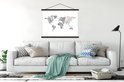 Affiche textile - Wereldkaart - Peinture - Grijs - Porte affiche