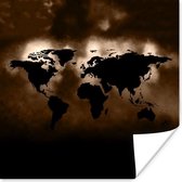 Décoration murale - Wereldkaart - Zwart - Lumière - 50x50 cm - Affiche