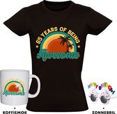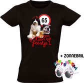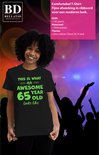 T-shirt habillé pour femme en noir avec imprimé pailleté en vert. Célébrez votre 65e anniversaire avec style avec ce superbe t-shirt pour femme. Ce T-shirt festif avec le texte "Voici à quoi ressemble un génial 65 ans" en lettres scintillantes et élégantes est parfait pour mettre en valeur votre anniversaire de 65 ans. Idéal pour les anniversaires et les séances photos ! Faites de votre 65e anniversaire une journée inoubliable avec cette outfit festive qui s'accorde parfaitement avec cette étape spéciale ! Matériel: 145 grammes, 100% coton. Merk: Bellatio Decorations.