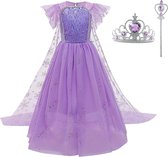 Costume de princesse du désert violet pour fille - Ce costume de princesse comprend un costume et un bandeau. (Chaussures non incluses.) Le costume ressemble aux tenues des danseuses orientales. Le haut a des manches courtes et est fait de tissu transparent en voile de paillettes avec un tissu violet clair façon satin et un gros strass sur la poitrine. Le pantalon est fait du même matériau. Une fausse ceinture dorée et des bandes de tissu voile de la ceinture recouvrent le pantalon. Un bandeau violet satiné avec un strass complète la tenue. Ce déguisement de princesse complet sera idéal pour votre fille à porter pendant le carnaval ou lors d'une soirée à thème! "