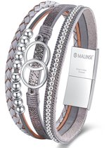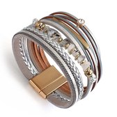 Bracelet enroulé Deja Jewels pour femme. Composé de plusieurs lanières de cuir de couleur blanche. Ces bandes sont doublement enroulées autour du poignet, donnant au bracelet un style bohème. Au milieu du bracelet se trouve une belle pierre naturelle de taille ovale, qui forme le centre du bracelet. Au bas du bracelet est suspendu un pompon décoratif en corde.>