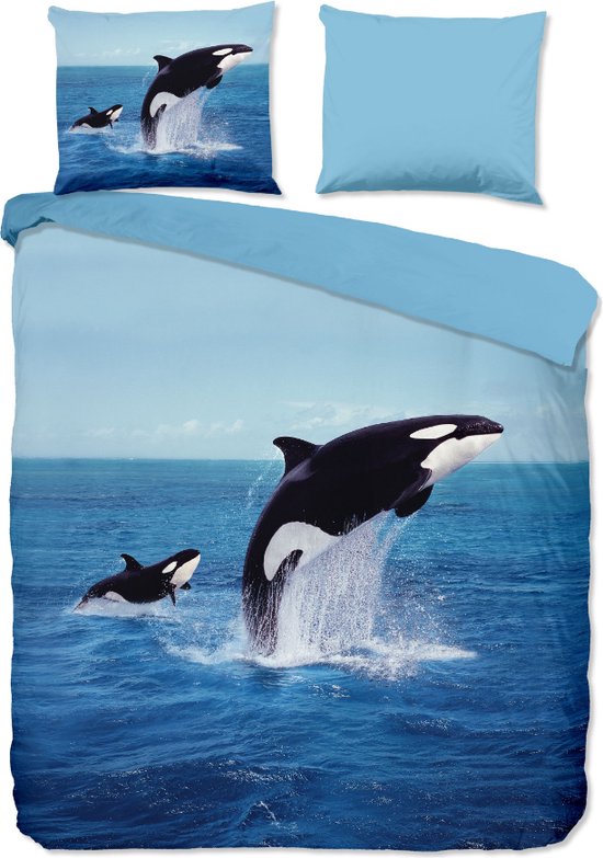 Set Housse de couette Dauphins Blauw & Poissons 2Personnes- 200x220 + 2 taies d'oreiller 60x70 cm