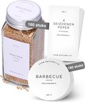 Avec pas moins de 180 autocollants pour les herbes et épices les plus courantes, vous n'aurez plus jamais à vous demander quel pot est lequel. Mais ce n'est pas tout ! Nous vous fournissons également des autocollants de durée de conservation pour les produits qui en ont besoin. De cette façon, vous gardez tout frais et organisé.