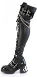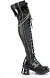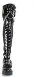 Demonia. Heel épais de 2 3/4 po, botte au-dessus du genou PF de 1 po, fermeture à Zip intérieure