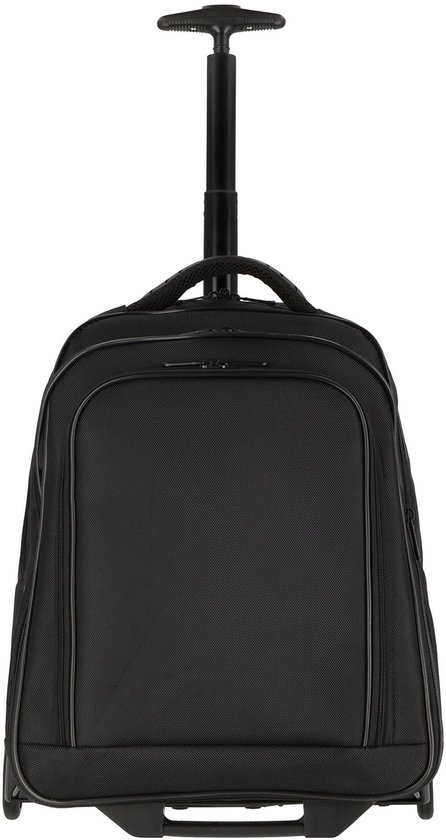 Élégant sac à dos à roulettes de Dermata en nylon de haute qualité. Le sac à dos trolley 3444NY a un compartiment principal spacieux. Dans cette boîte, il y a de la place pour les documents. Un ordinateur portable de 16 pouces peut être rangé dans le compartiment amovible pour ordinateur portable. En plus d'un compartiment principal spacieux, le sac à dos dispose de compartiments pratiques à l'avant. Dans ce compartiment avant, il y a des compartiments spéciaux pour les documents de voyage, les stylos et un téléphone. Le sac à dos peut être fermé avec des fermetures éclair. Avec système de chariot intégré et roues en bas.