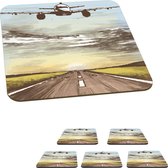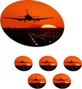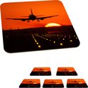Dessous de Sous-verres - Coucher de soleil - Avion - Oranje - Soleil - 10x10 cm - Dessous de verre - 6 pièces