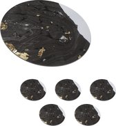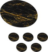 Dessous de Sous-verres - Rond - Goud - Zwart - Luxe - 10x10 cm - 6 pièces