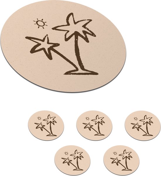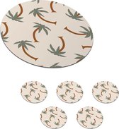 Dessous de Sous-verres - Rond - Palmier - Soleil - Pastel - 10x10 cm - 6 pièces