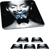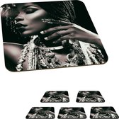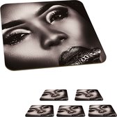 Dessous de verre Femme - Noir et blanc - Collier - Lunettes de soleil - 10x10 cm - 6 morceaux - Sous pour Verres et Tasses