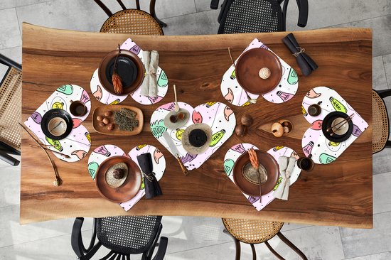 Le matériau flexible rend les sets de table faciles à ranger. Vous pouvez les poser à plat dans un tiroir par exemple, mais il est également possible de les enrouler. De plus, vous pouvez également utiliser les sets de table comme tapis de bricolage ou comme tapis de souris pour votre bureau. C'est donc aussi un produit multifonctionnel !