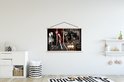L'affiche textile est imprimée sur une toile solide avec deux lattes de bois vierges en haut et en bas. Une ficelle est attachée aux lattes, de sorte que la commission scolaire puisse être facilement suspendue. Les affiches textiles MuchoWow sont disponibles dans plus de 25 tailles différentes. En plus des lattes en bois vierges, les affiches textiles sont également disponibles avec des lattes noires ou blanches.