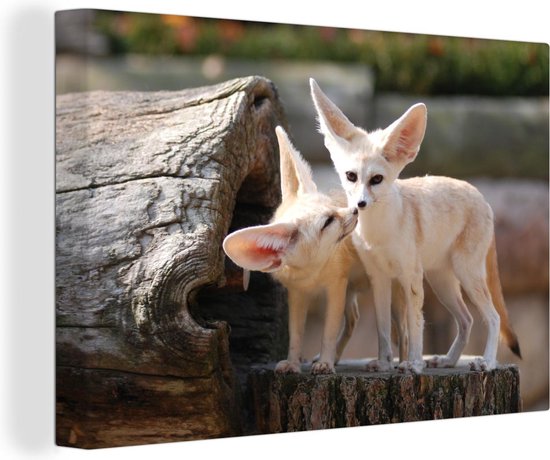 Deux adorables renards Fennec sur un tronc d'arbre Toile 30x20 cm - petit - Tirage photo sur Toile peinture (Décoration murale salon / chambre) / Animaux sauvages Peintures sur toile