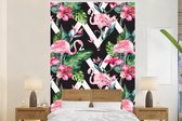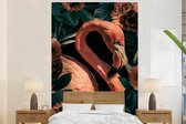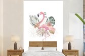 Deux flamants roses entre les feuilles et les fleurs 160x240 cm