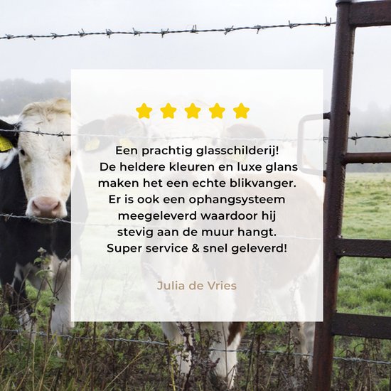 Ce produit est imprimé sur une plaque de verre. Grâce à cette texture lisse et brillante, la technique d'impression UV assure une belle impression brillante. Une photo sur verre est imprimée très nettement avec des couleurs très vives. Un système de suspension peut être commandé en option avec le produit pour fixer facilement l'impression au mur.
