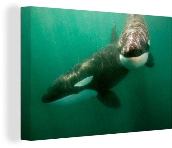 Deux Orcas dans la toile de l' eau 2cm 60x40 cm - impression photo sur toile peinture (Décoration murale salon / chambre à coucher) / Animaux sauvages Peintures Toile
