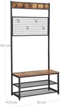 - Rangement pratique : Avec 9 crochets pour manteaux, sacs et clés, un banc pour chaussures et deux étagères en treillis pour un espace de rangement supplémentaire.