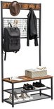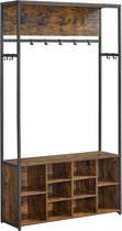 DeXem - Porte-manteau - Avec étagère à chaussures - Cadre en métal robuste - Style industriel - Marron rustique et Zwart - étagère à chaussures