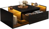DHN Table Basse Haute Brillance - LED 16 couleurs - Siècle des Lumières - Lumière Acrylique Réfléchissante 2 Tiroirs - Zwart