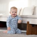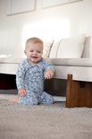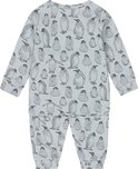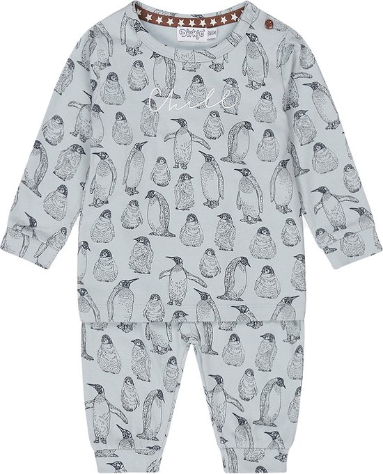 Pyjama garçon Dirkje en bleu clair. Le pyjama a un imprimé intégral avec d'adorables pingouins. Les tailles jusqu'au 86 inclus ont des boutons-pression sur l'épaule.