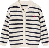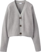Les poignets et le col du cardigan sont ornés d'une rayure en fil lurex argenté.