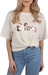 T-shirt, tee-shirt de couleur beige, manches courtes, avec encolure ronde.