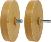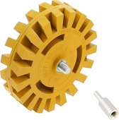 Dissolvant de Tape : disque + tige (grand modèle) Disque en plastique spécial pour éliminer les lignes décoratives et les restes d'autocollants et de ruban adhésif double face Geen dommage à la surface, gain de temps Vitesse idéale: 3000-4000 tours par minute