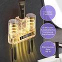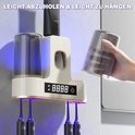 Distributeur Automatique de Dentifrice avec Porte-Brosse à Dents - 4 Emplacements pour Brosses - 2 Gobelets Magnétiques - Fixation Murale - Distributeur de Dentifrice Électrique - Blanc
