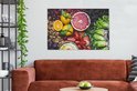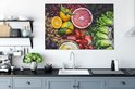 Divers fruits étalés sur une toile de table 2cm 120x80 cm - Tirage photo sur toile (Décoration murale salon / chambre)